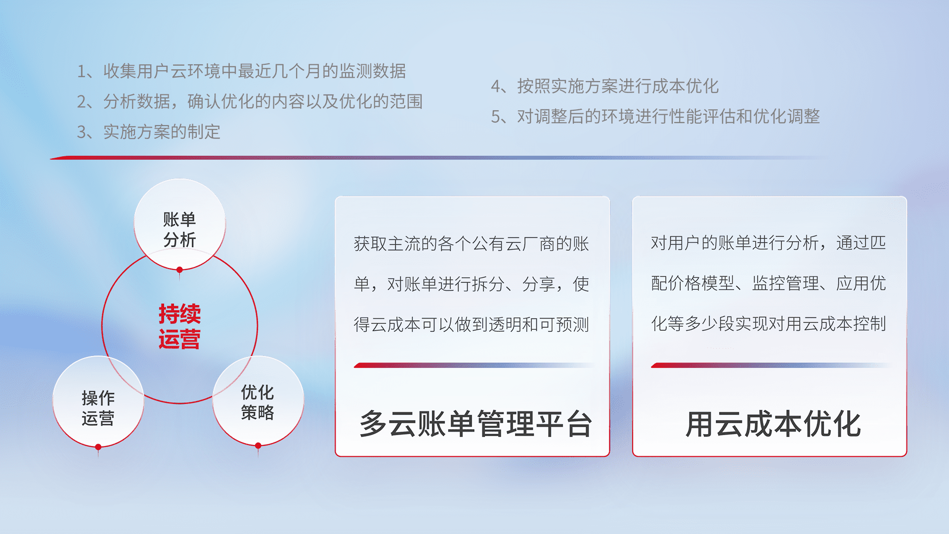 监控业务系统资源开销,,对资源的消耗精确计量,,,,实现费用的透明化管理,,,,不断提升资源使用率,,调整资源购买方式,,,降低资源费用成本,,,,用云成本可预测、、、用云费用可优化,,,,云资源配额有据可依。。